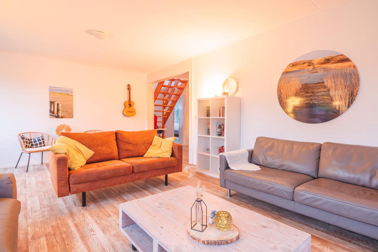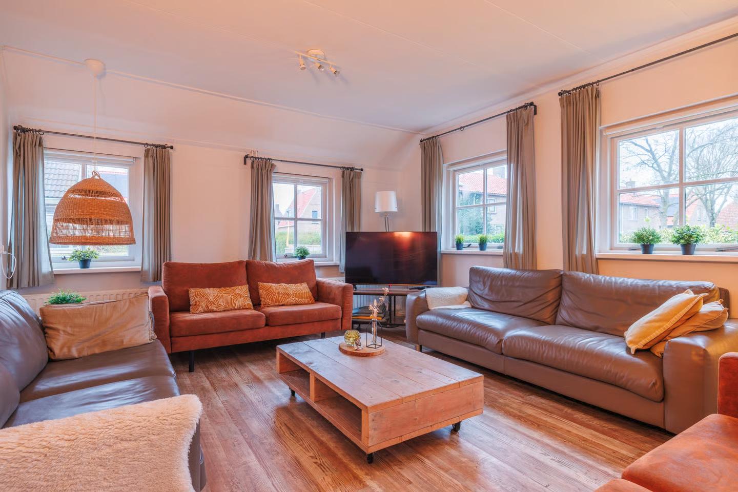 Noorderzon is een ruime familie vakantiewoning met 5 slaapkamers voor maximaal 12 personen en een royale tuin met o.a. loungebanken, BBQ, lange eettafel.