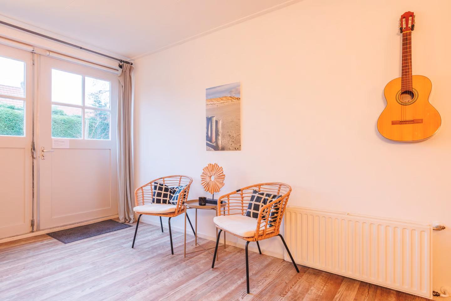 Noorderzon heeft aan de voorzijde een eigen terras met gezellige loungebanken. Verder een beschutte royale tuin met lange tafel, loungebanken en BBQ. Er is een eigen parkeerplaats beschikbaar.