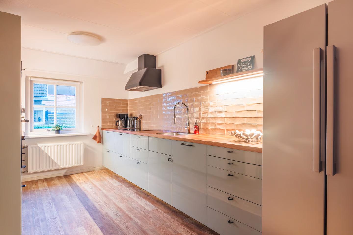 Noorderzon is uitgerust met een nieuwe zeer complete keuken met o.a. oven, magnetron, 5 zones inductiekookplaat, vaatwasser, Amerikaanse koel-/diepvrieskast. De eethoek heeft een lange tafel om met alle vrienden en familieleden lang te tafelen of spelletjes te spelen. De comfortabel ingerichte woonkamer heeft een grote 50" flatscreen smart TV met een uitgebreid zenderpakket. Er is gratis uitstekende WiFi in het hele pand.