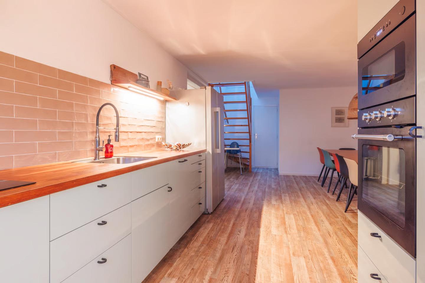 - Keuken met extra grote Amerikaanse koel-/diepvrieskast.